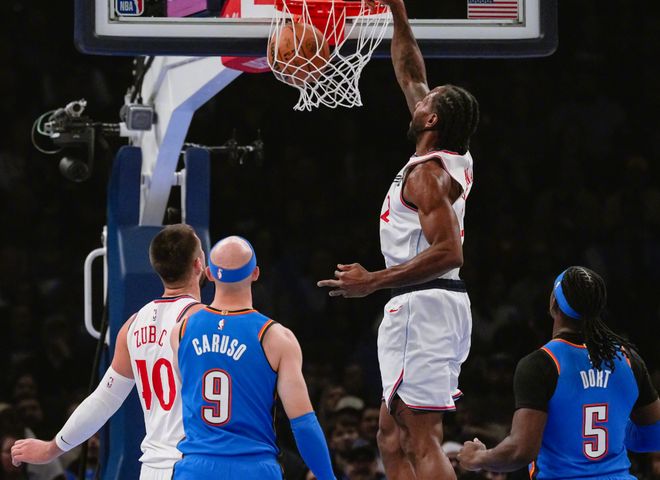 最近半個月,NBA狀態(tài)最好的球隊,毫無疑問是快船。以最近6場區(qū)間計算,快船進(jìn)攻效率127.2,防守效率105.6,百回合凈效率值+21.6,同期和他們最接近的凱爾特人,百回合凈效率值只有+11.0。6連勝期間,快船累計凈勝122分,場均贏對手20.3分!快船開啟北伐之旅,和兩個人有關(guān),第一是祖巴茨,他受傷后,快船內(nèi)線空間被釋放出來,節(jié)奏更快。第二是倫納德,小卡可以不斷沖擊籃下,包括一系列讓人看不懂的三分連射。在過去6場比賽中,倫納德場均39分,過去5場,倫納德場均40.4分7.8籃板4.2助攻2.6搶斷。