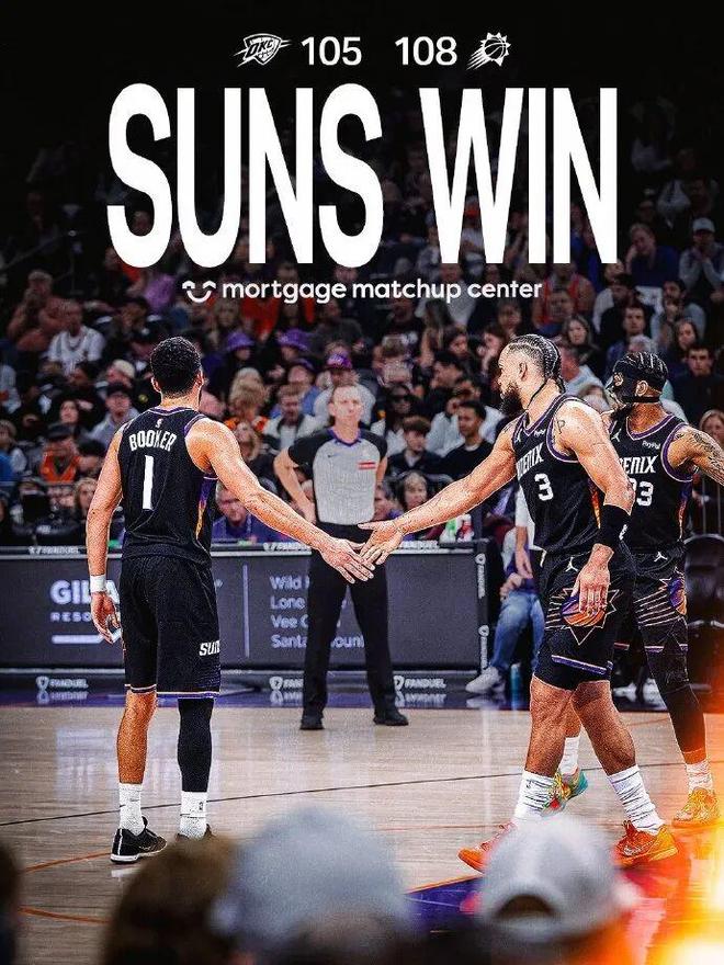 太陽成為開拓者/馬刺/森林狼后,本賽季第四支擊敗雷霆的球隊