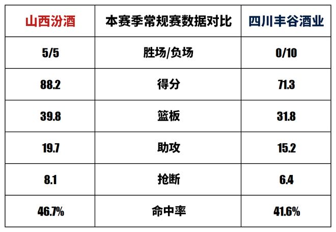 山西汾酒與四川豐谷酒業(yè)歷史上一共交手31次,山西汾酒18勝13負(fù)。上賽季兩隊(duì)交手4次,山西汾酒3勝1負(fù)。