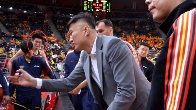 第一節(jié)最后半分鐘,王洪澤弧頂持球想給吊球給徐杰,但出現(xiàn)了傳球失誤,一個回合后,王洪澤立馬被杜鋒換下。