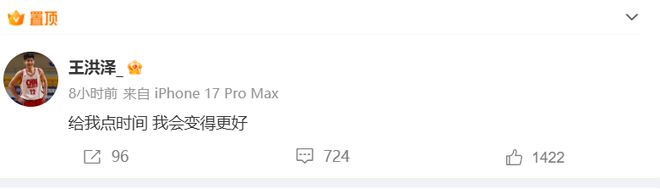 在本場比賽結(jié)束后,一向低調(diào)的王洪澤在賽后發(fā)了這么一條動態(tài):給我點時間,我會變得更好。評論區(qū)下方有大量球迷向他表達了鼓勵,王洪澤幾乎就不怎么玩社交媒體,這次他之所以會罕見的向球迷喊話,主要還是他近期的表現(xiàn)實在太糟糕了,有點辜負教練、隊友、球迷的期待。