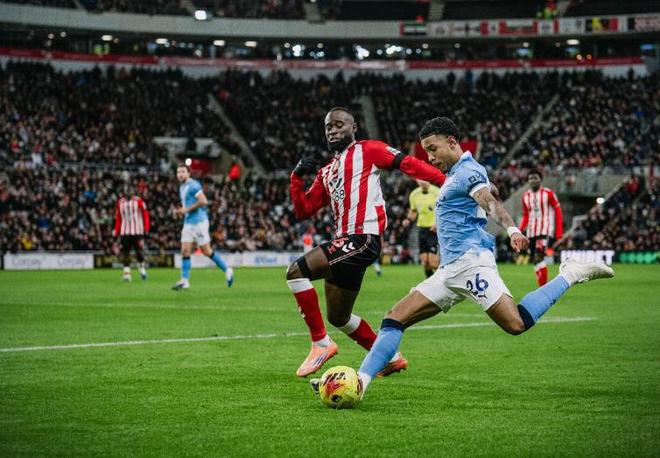 第65分鐘曼城再次制造殺機,羅德里右路起腳傳中,格瓦迪奧爾前插甩開防守球員后,在禁區(qū)內(nèi)頭球攻門,但被桑德蘭門將神撲化解,余下的近半個小時的時間,曼城繼續(xù)圍攻桑德蘭,但后者的密集防守讓藍月軍團束手無策,始終無法將攻勢轉(zhuǎn)化為進球,只能接受一場悶平的結(jié)局。