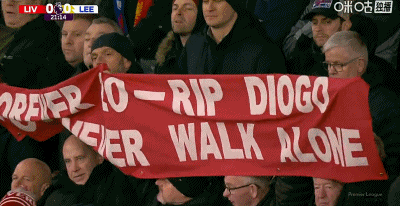 第21分鐘,比賽第二十分鐘,球迷舉起紀(jì)念若塔的橫幅