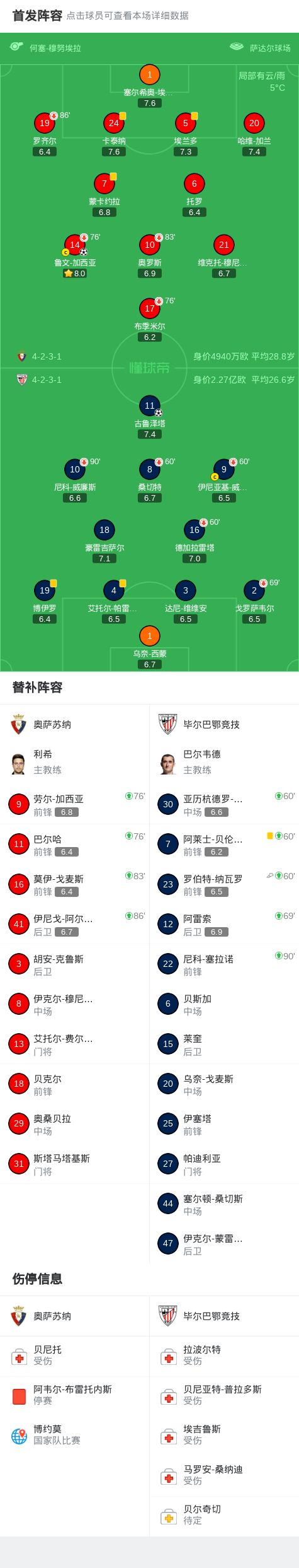 北京時(shí)間1月3日西班牙足球甲級(jí)聯(lián)賽 聯(lián)賽 第18輪,奧薩蘇納主場(chǎng)對(duì)陣畢爾巴鄂競(jìng)技。奧薩蘇納魯文-加西亞破門(mén)。畢爾巴鄂競(jìng)技古魯澤塔破門(mén)。最終比分奧薩蘇納 1-1 畢爾巴鄂競(jìng)技。